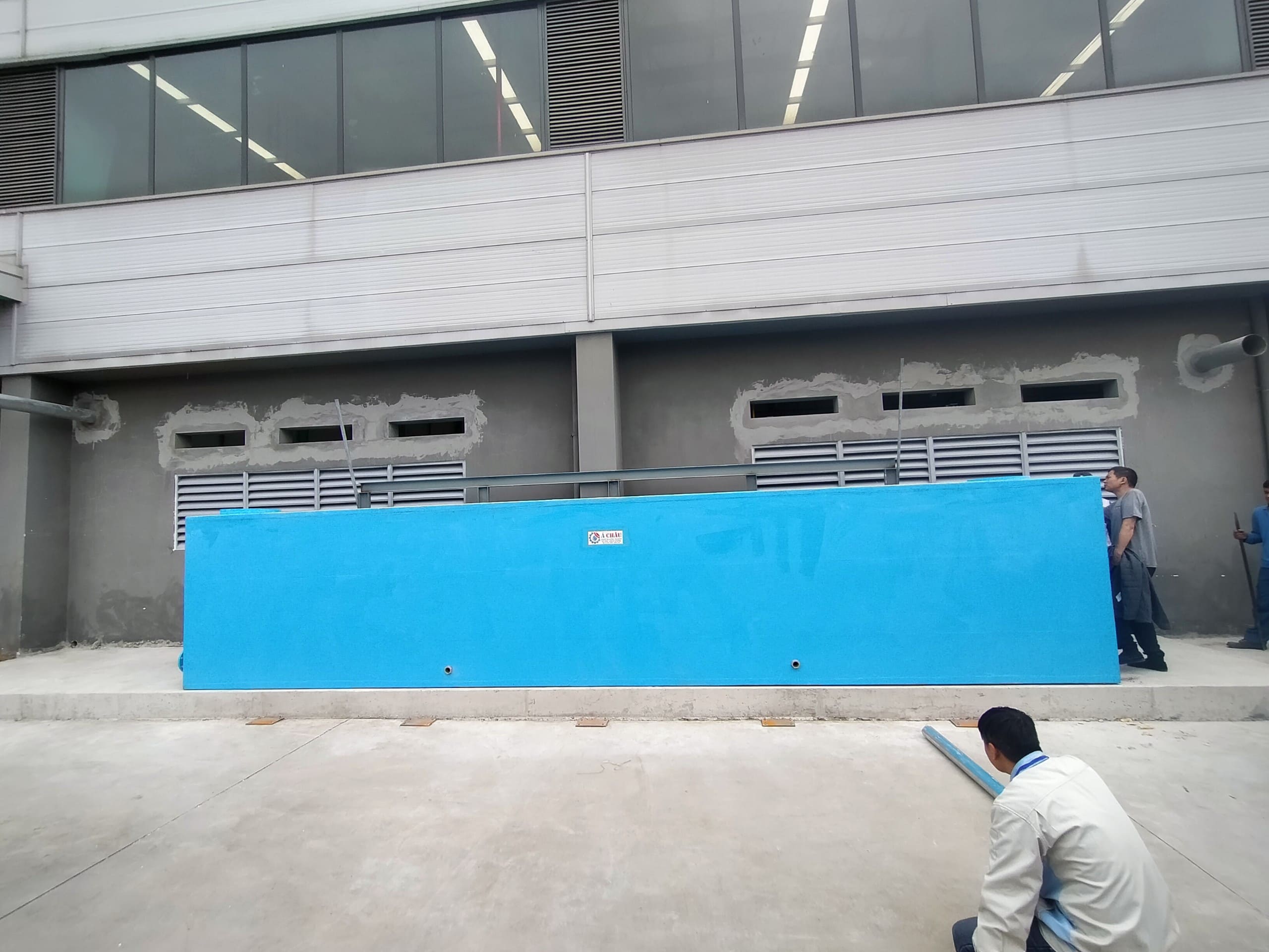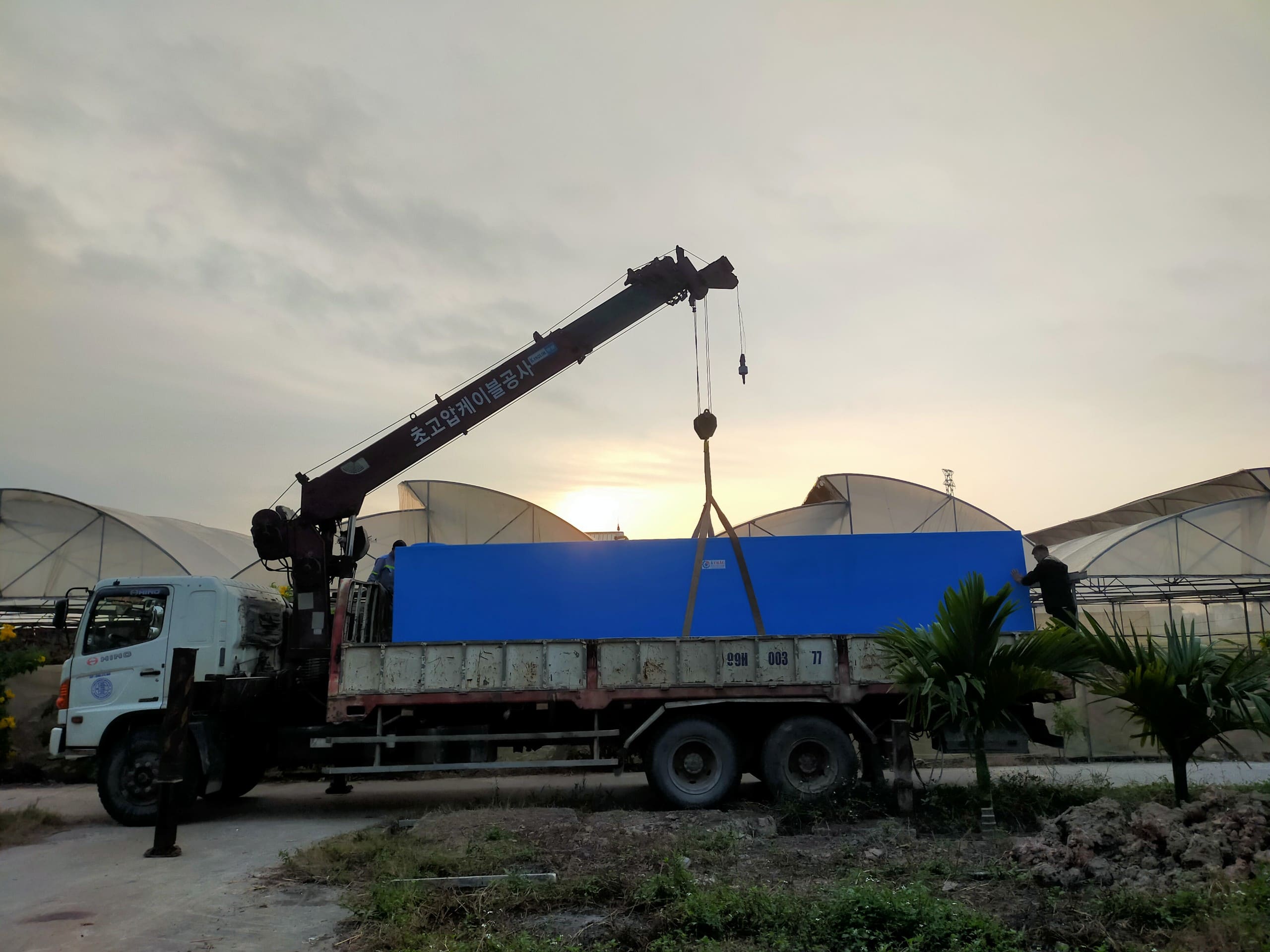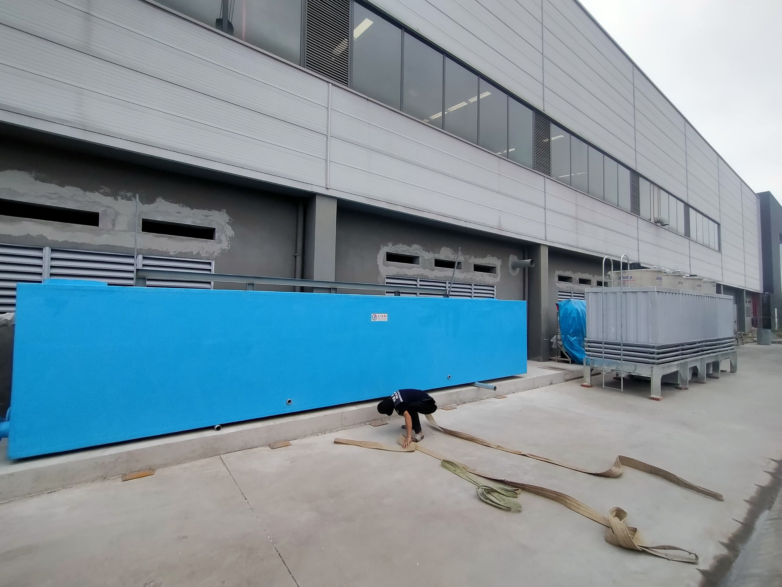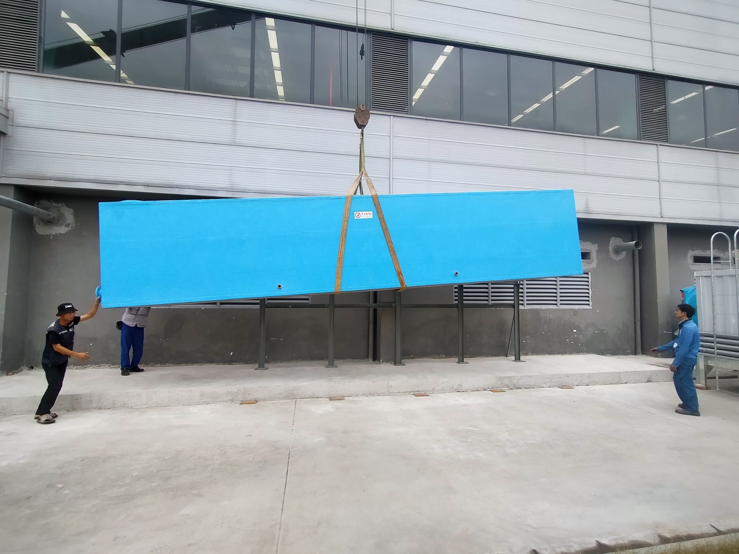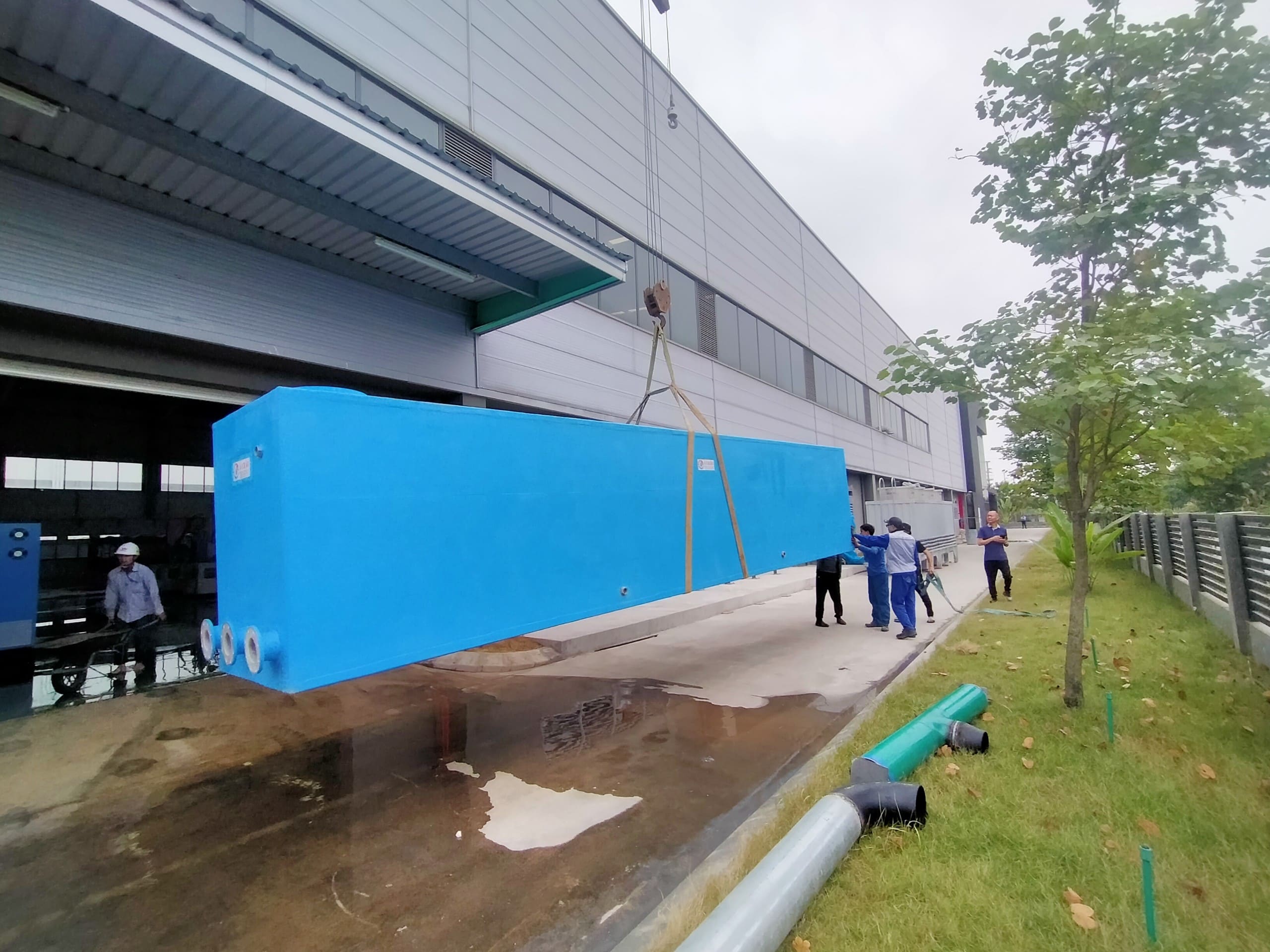 Cung cấp Tháp Giải Nhiệt Vuông và Bể Composite Dạng Khối Hộp thể tích: 15m3. Chứa nước giải nhiệt tuần hoàn. Tháp Giải Nhiệt và Bể Composite được thiết kế riêng dành cho mặt bằng bị hạn chế chiều rộng. Lắp đặt và cẩu hạ hàng vào vị trí